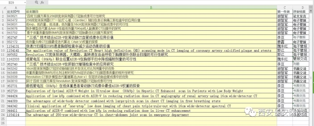 近日中华放射学学术大会2018(Chinese Congress of Radiology 2018)投稿结果揭晓,长安医院影像科共中稿23篇,其中影像科胡智军副主任中稿论文发言1篇,实现长安医院影像科中放大会发言零突破,电子壁报9篇,壁报交流1篇,列题1篇,书面交流11篇。